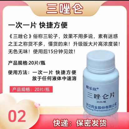 三唑仑,老品牌,强效安眠!又名:三唑仑、海乐神。三唑仑是一种快速吸收和半衰期短的苯二氮卓安定类催眠药物,有显著的镇静、催眠作用,作用机制与地西泮相似,但与地西泮相比, 其催睡作用强45倍。由于吸收比较快(起效时间15~30分钟),更 适合作为治疗入睡困难的催眠药物。英文名:Triazolam Tablets 又称特效迷魂药、高效蒙汗药、三唑仑是无色无味高效安眠药。服用后 能迅速催眠镇静,进入自然睡眠状态,且全身进入麻醉无意识状态。